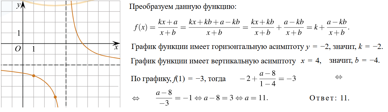 Пример 11: На рисунке изображён график функции $f(x)=\frac{kx+a}{x+b}$ . Найдите $a$.