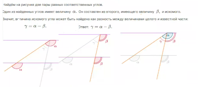 - Сумма углов треугольника 180 градусов . Достроить параллельную, увидеть секущую!
